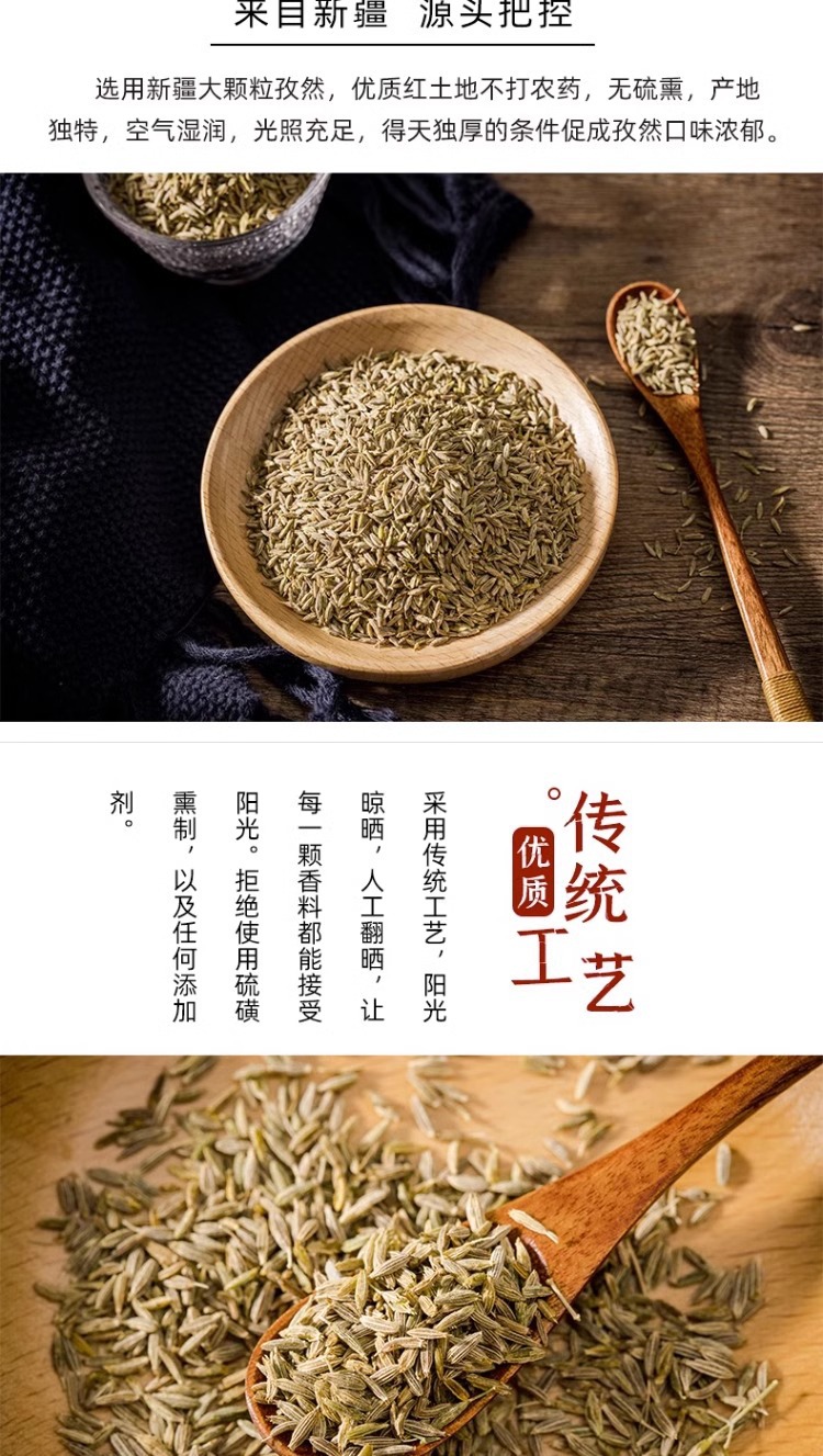 【Culinary Applications】Bulk cumin seeds are an important spice for preparing barbecue and stews. Their unique pungent aroma effectively eliminates the gamey smell of meat and adds layers of flavor to