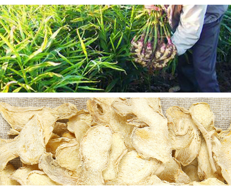 【Health Benefits】Dried ginger slices contain abundant volatile oils and gingerol and other active compounds, with properties that warm the middle energizer, restore yang, and warm the lungs to resolve phlegm. In traditional Chinese medicine theory, dried ginger is widely used to treat symptoms like spleen and stomach cold deficiency, vomiting and diarrhea, and cold phlegm cough. Modern research indicates that dried ginger also has antioxidant, anti-inflammatory, and digestive-promoting properties. Moderate consumption helps boost immunity and improve gastrointestinal function.