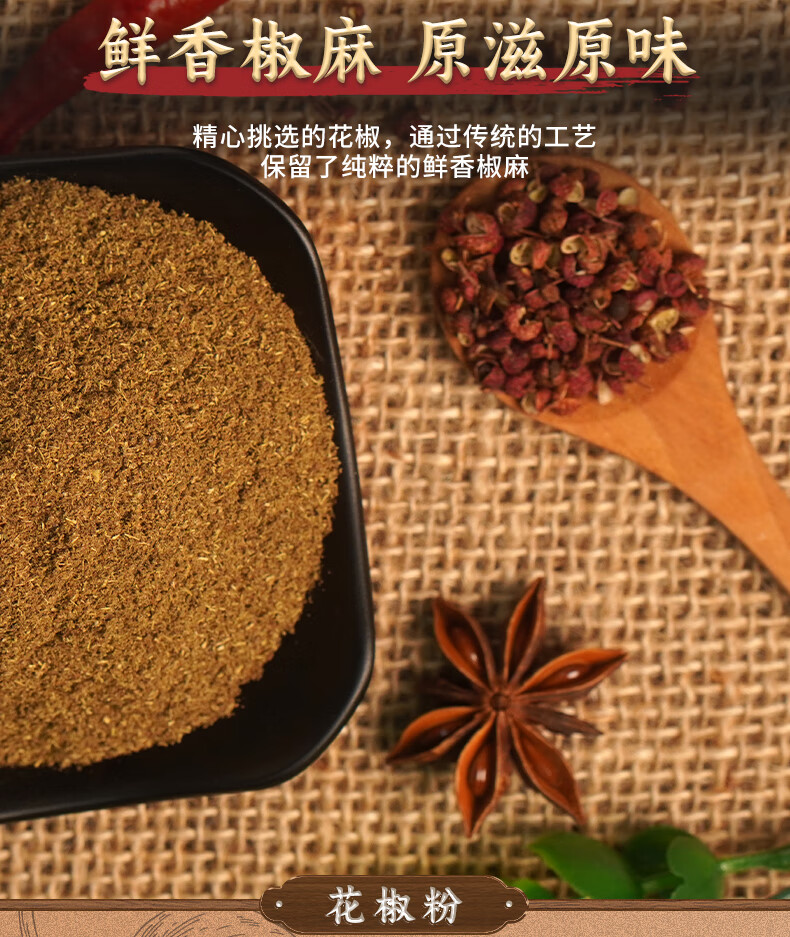【Product Description】Made from premium red Sichuan peppercorns sourced from Fangchenggang, Guangxi, and carefully ground into a fine 35g powder. This product features a distinctive numbing aroma and f
