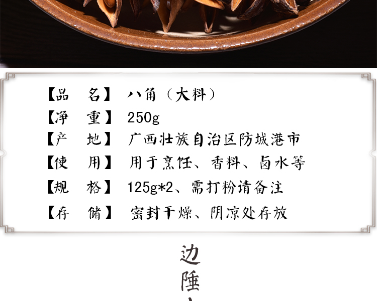 精选八角,香味纯正,是卤味与汤品的经典香料。