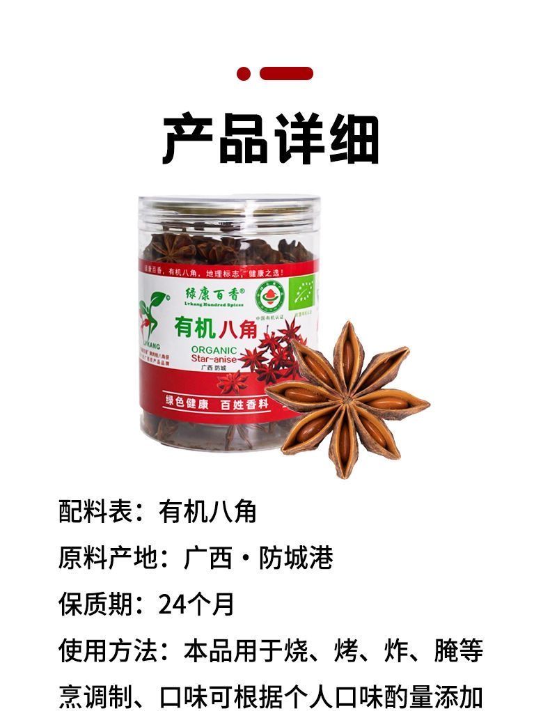 绿康百香有机八角100g 广西八角大料大茴香卤料香料香辛料调料